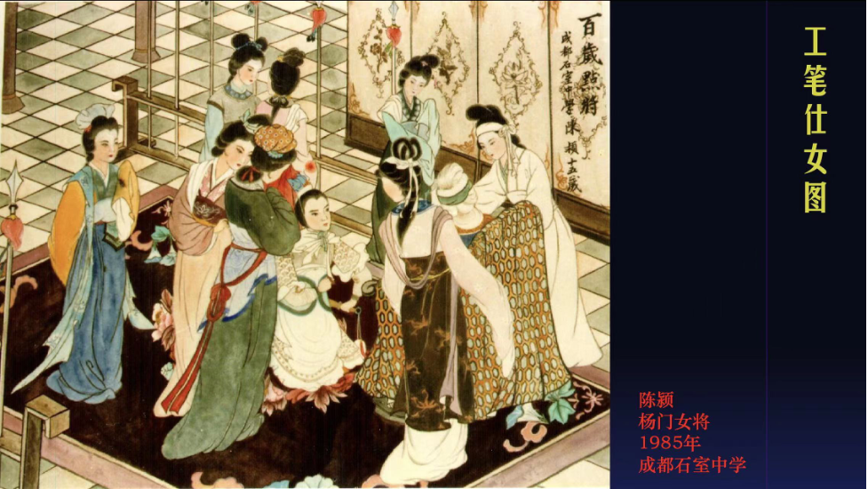在写给父亲的文章《父亲写竹,我画仕女》里,陈颍讲到了银杏叶画灵感的使者墨竹,与一生爱竹写竹的父亲是分不开的。如果说“墨竹”是点亮她艺术生涯的第一盏灯,父亲就是那个掌灯人。在父亲的指教下,陈颍从小打下了扎实的临摹和白描功底,这为她日后的艺术创作中的国画因素奠定了基础。当她爱上仕女图时,爸爸并不看好,认为工笔画不入流,不需要什么功底。但是有心的父亲并没有阻止,而是给了她自由发展的空间。当陈颍的工笔画仕女图一天比一天好,开始画出一点名堂的时候,父亲引她去见工笔画家,向高人讨教。十五岁的她,在石室中学就读时,完成了一幅让人刮目相看的工笔画仕女图。