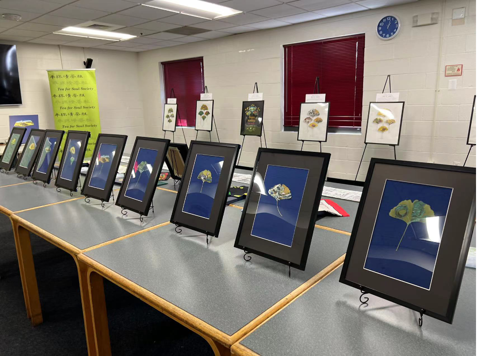 2022年立秋的前一天,8月6日周六,半杯清茶社有幸请到了艺术家,银杏叶画手绘者陈颍女士,在波多马克社区活动中心举办了一次别开生面的银杏叶画展和讲座:Splendor of Leaves, 银杏叶画·木叶之华。这是半杯自2020新冠以来的第一次线下活动,吸引了不少大华府地区热爱艺术的人士。陈颍的中国科技大学校友也纷纷赶来,为学妹学姐庆贺和助兴。