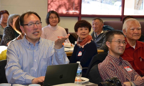 华府侨社五位德高望重的长者特地前来参加半杯清茶社十周年纪念茶话会以示祝贺,并在会上发表了热情洋溢的讲话。他们分别是:百岁"三乐"老人刘缘子,年届九旬的海外华人华侨史专家沈己尧教授、黄瑞我伉俪,和著名东西方文化学者陈一川、余筱薇伉俪。刘缘子年届百岁却仍然思路清晰、谈吐幽默,她的发言引来人们阵阵的欢笑声;沈己尧教授则向半杯清茶社赠送了他再版的文集《浴火重生的年代》。半杯清茶社亦师亦友的长者、曾三度为本社作精彩演讲的陈一川先生对清茶社成员和今后的活动寄予厚望,另特别介绍并赠送由美国作家、哲学家Will Durant 和 Ariel Duran 夫妇合著之The Lessons of History《历史的教训》。他引述现代著名哲学家和文学家 George Santayana (乔治.桑塔耶拿) 的名句:"Those who cannot remember the past are condemned to repeat." ("忘记过去者注定会重蹈覆辙"),指出以史为鉴在当今社会的重要意义。