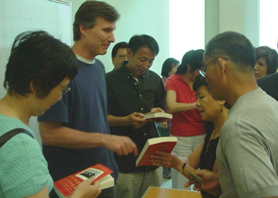 此次半杯清茶社的座谈活动在马州洛克维尔图书馆会议室举行,由薛海培主持并担任引言人,来自两岸三地的各界人士、数位美国人士以及华文媒体工作者共六十余人参加了同潘文的座谈交流活动。尽管讨论的内容多属严肃话题,但是过程不乏轻松幽默的场面;虽然时有意见分歧,甚至尖锐的批评,但大家均保持相互尊重、理性交流的君子之风。会后,潘文为购书者签名留念,并希望日后有机会同大家进行更多的意见沟通和交流。