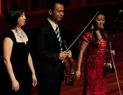 钢琴家杨佳月和小提琴演奏家高翔、二胡演奏家杨悦 (自左至右)