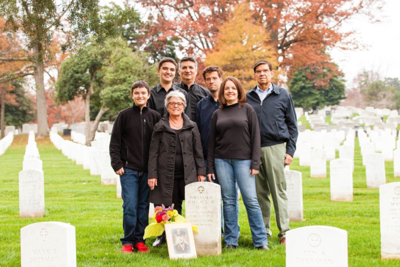 朱迪与家人在阿灵顿公墓祭奠父亲