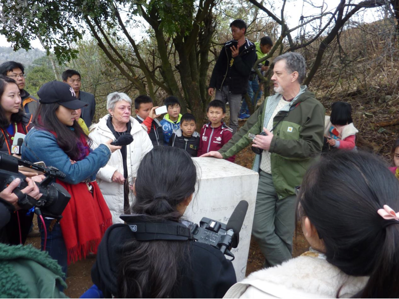10年后,朱迪来到纪念碑前缅怀父亲。她写道:“站在中国南方的山间,我们发现了当地善良和极富同情心的人们。我们基于共同的历史和价值观建立起了深厚的联结与情谊。我们遇到了那些耕种劳作、养育孩子、在战争和艰难困苦中幸存下来的家庭,他们基本上没有受到外界的注意。这些生活在云南山区云雾之南的强壮的彝族人民,心怀感恩和荣誉,前来缅怀一位美国军人。我给自己找到了一个空间,在那里,一个来自美国的军人女儿可以漫步在人群中,寻找她父亲的记忆,就像回到自己的家里一样。天上的太阳越来越低。终于到了回村的时间了。我在冰冷的石头上亲吻了我父亲比尔的名字,并再次感谢大家和我们一起来到这里祭奠我的父亲。当我们转身走向下山的陡峭田野时,在靠近纪念碑石的地方,有人燃起了一串串响亮的爆竹,那爆竹声仿佛在说,‘我们终于到了,我们来到这里表达了对比尔的追忆和敬意!' 多么好的中国传统啊!这是一个充满回忆、鲜花与爆竹气息的日子。”