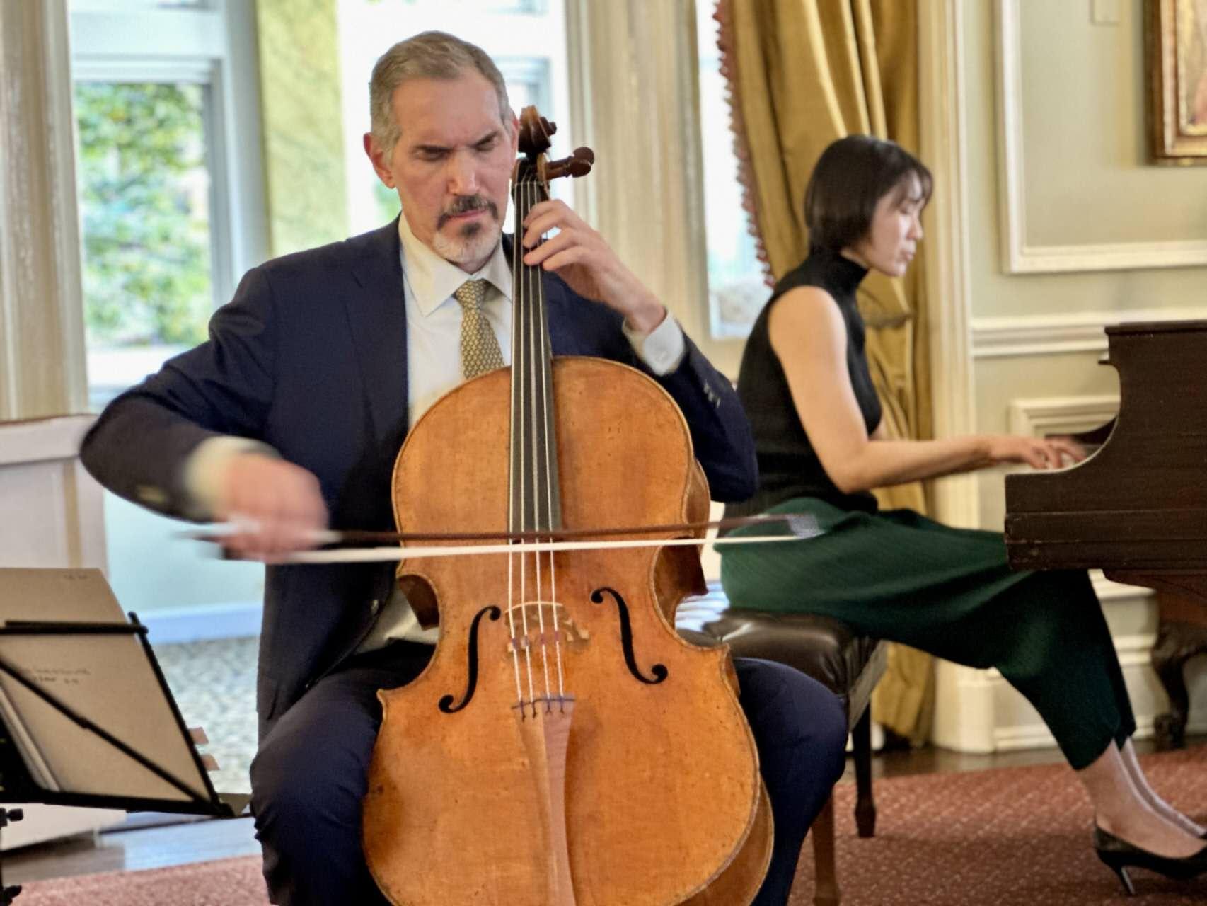 这场音乐会给我们带来的另一份惊喜,是这架曾由20世纪久负盛名的波兰裔美国钢琴大师 Arthur Rubinstein 每次来华盛顿在 Bacon 之家下榻时所特地选用的演奏钢琴。这架 Steinway 钢琴的主人原为 Bacon 之家 的女主人Virginia Murray Bacon 女士,在她离世后连同房屋以及全部物品均遗赠给了退休外交家与领事官员协会。这次音乐会由蘇婉淇博士用这架具有特殊历史意义的钢琴与 Drachman 先生的名贵 Montagana 大提琴完美匹配,为我们精彩上演了以下三首古典音乐名曲。